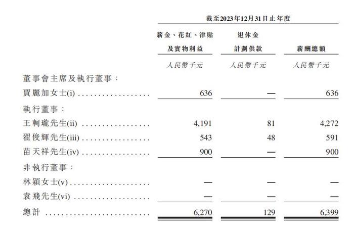 王轲珑2023年薪酬,图源:公司招股走漏书