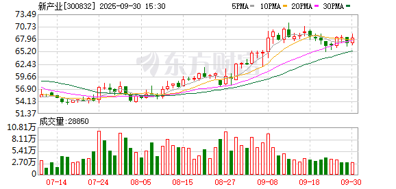 证券时报·数据宝统计浮现,新产业本日收盘价为68.30元,上升1.83%,日换手率为0.42%,成交额为1.97亿元,全上帝力资金净流入1679.97万元,近5日该股累计上升2.91%,近5日资金共计净流入3385.91万元。
